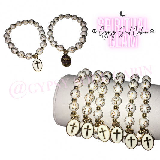 Blue Crystal Rosary Beads Holy Cross & Mary Charm Necklace Charm