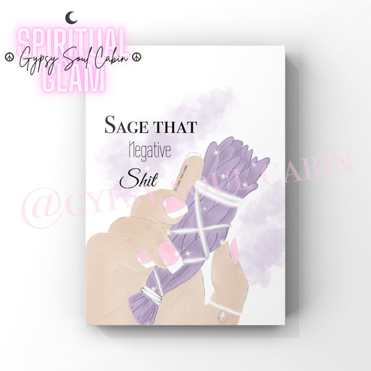 Sage That Negative Shit Art, Positive Energy Purple, Black & White A4 Quote Prints