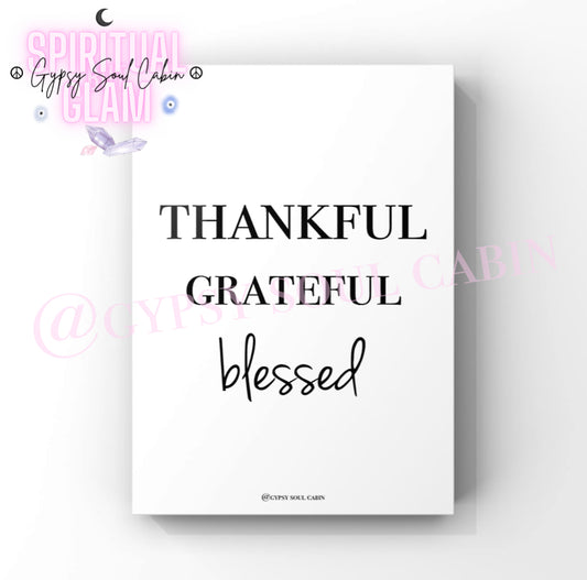 Thankful Grateful Blessed Black Pink Blue & White Quote Prints