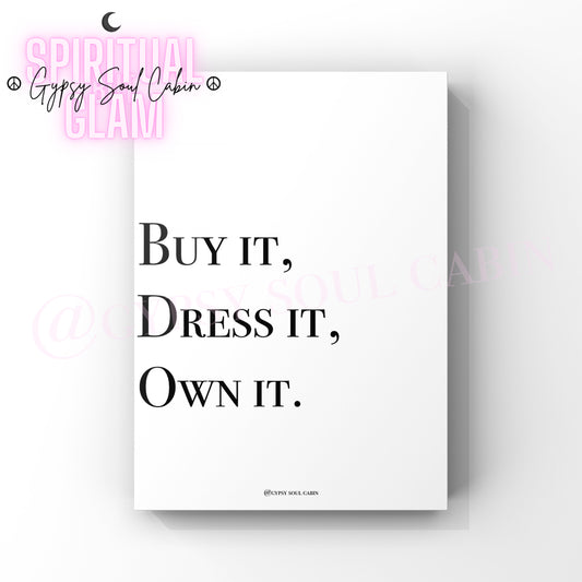 Fashion, Confidence, Buy It, Dress It, Own It Quote Prints