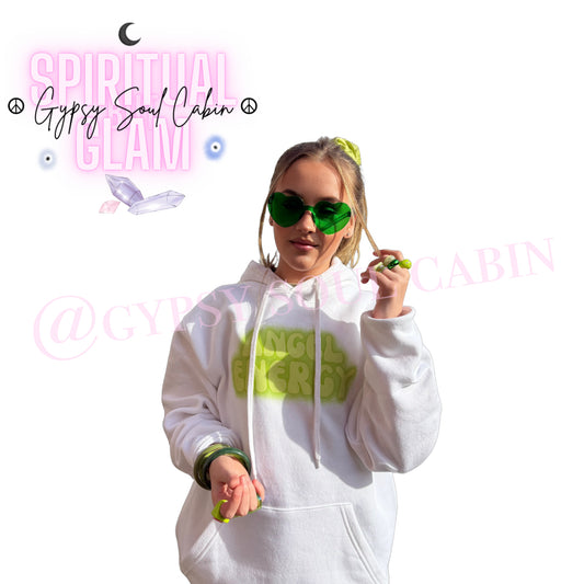 Angel Energy White Quisha Green Front Pocket Girls, Women’s Oversized Hoodie